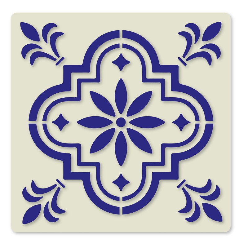 Mediterranean No.5 Tile Crafting Stencil Washable Reusable Mylar (10cm)