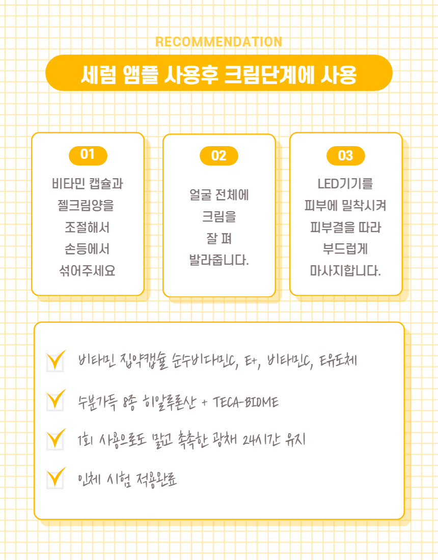 • Precautions when using: If you experience any abnormal symptoms or side effects, such as red spots, swelling, or itching, due to direct sunlight when using or after using cosmetics, consult a specialist. Avoid using on areas with wounds, etc. Precautions for storage and handling 1) Store out of reach of children 2) Store away from direct sunlight