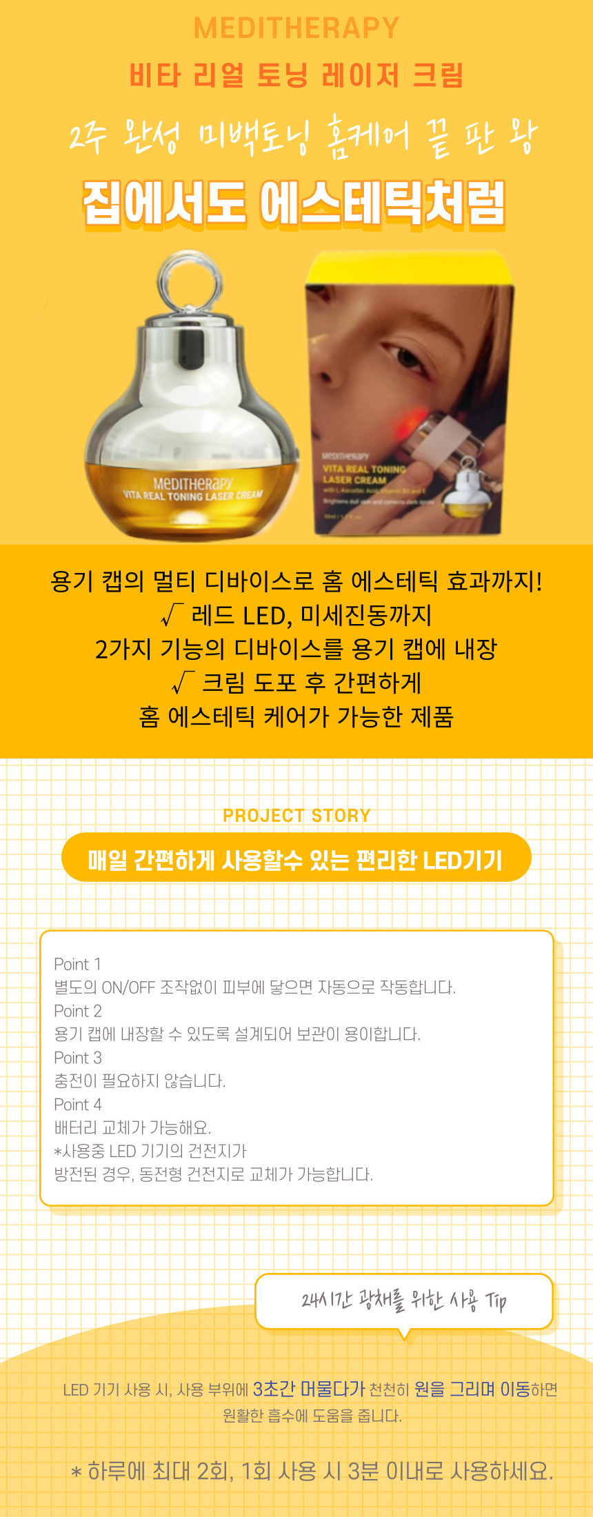 Meditherapy Vita Real Toning Laser Cream 50g (Vibrating LED Ray Device + Dual Vitamin Cream) Vita Laser Cream Home Use Spot Removal Device Laser Toning / 메디테라피 비타 리얼 토닝 레이저 크림 50g(진동LED레이기기+듀얼비타민 크림) 비타레이저크림 가정용기미제거기 레이저토닝