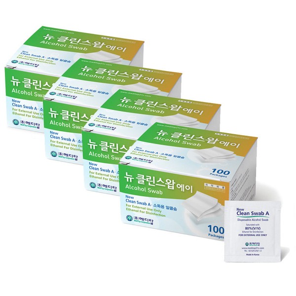 Meditop New Clean Swap A 1 box 100 sheets x 4 alcohol cotton individually wrapped / 메디탑 뉴 클린스왑 에이 1박스 100매입x4개 알콜솜 낱매포장
