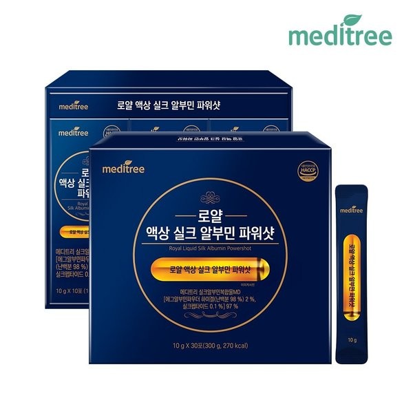 Meditree 로얄 액상 실크 알부민 파워샷 1박스 (30포) Royal Liquid Silk Albumin Power Shot Box (30 Sachets)