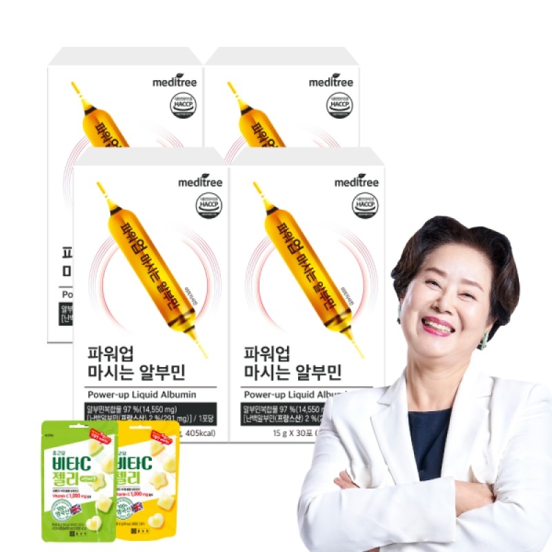Meditree Power Up Drinkable Albumin 4 boxes (120 packets) with 1 free pack of Egg White Taurine Liquid Vita C Jelly (random flavor) / 메디트리 파워업 마시는 알부민 4박스 (120포) 난백 타우린 액상 비타씨젤리 1봉증정(맛랜덤)