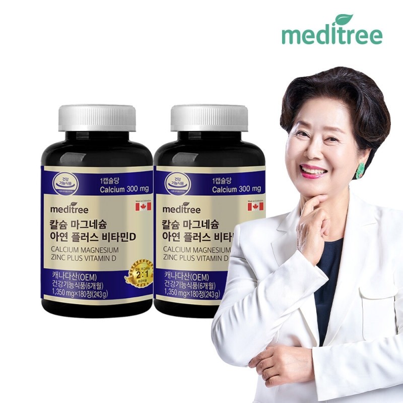 Meditree Calcium Magnesium Zinc Plus Vitamin D 2 Bottles / 메디트리 칼슘 마그네슘 아연 플러스 비타민D 2병