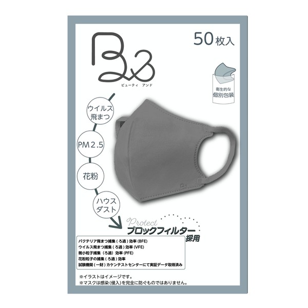 Meditrust B & (Beauty and) 3D Color Mask, Individual Packaging Gray, 50 Sheets