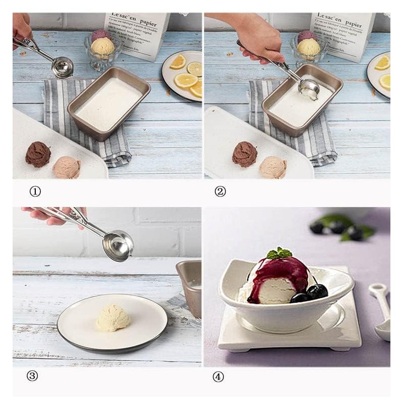 After secondary polishing, the surface of the metal ice cream scoop with trigger sparkles. A beautiful look will add a pop of color to your kitchen.