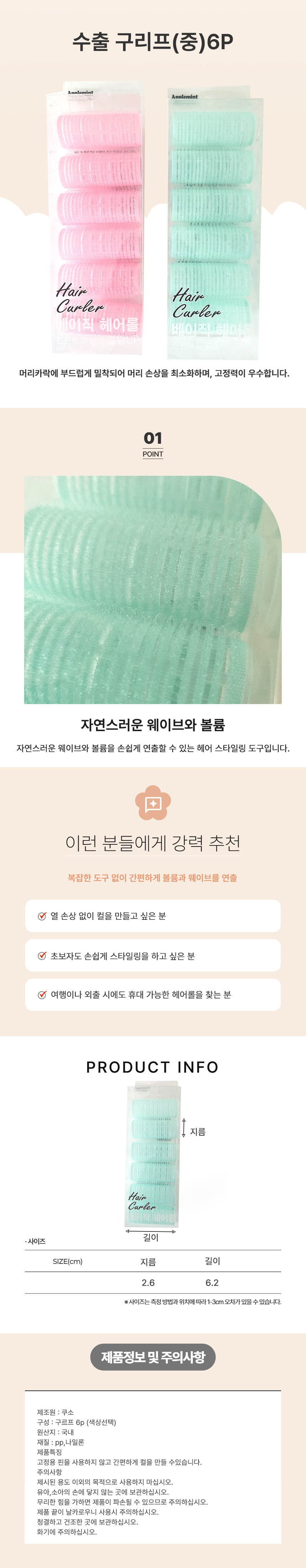 Medium Hair Rollers (6P) for Root Volume & Bangs Styling Pink Roller 5ea