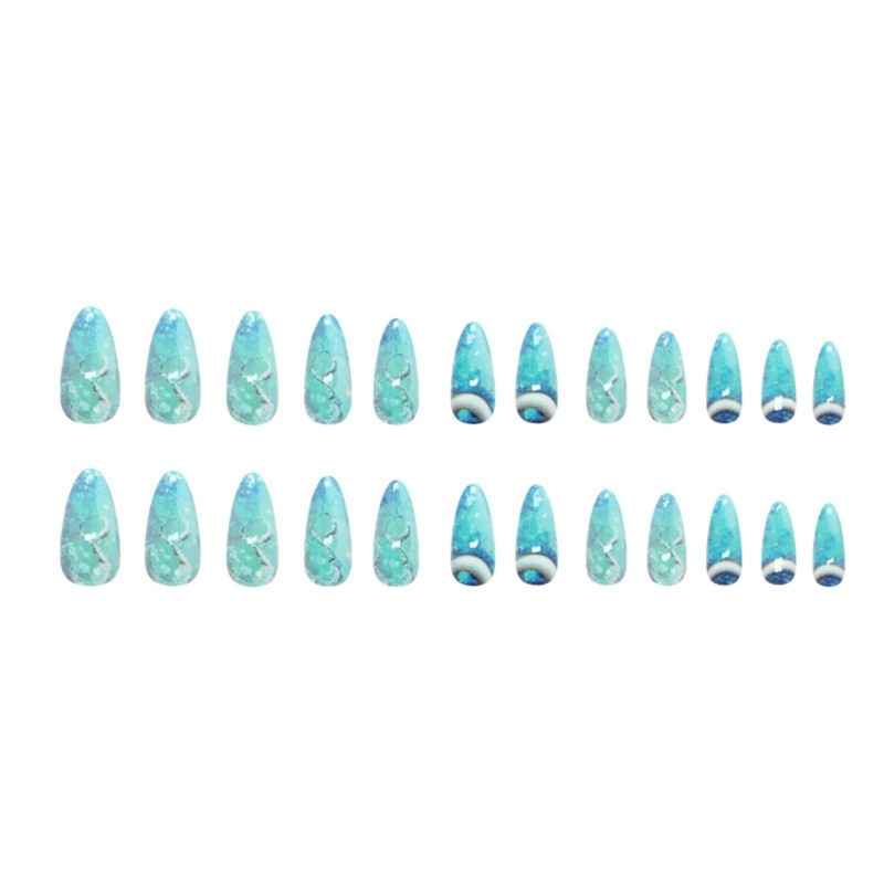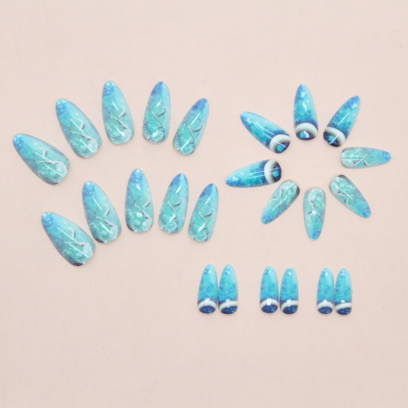 Medium Press on Nails Almond Fake Nails Ombre False Nails Blue Artificial Nai...