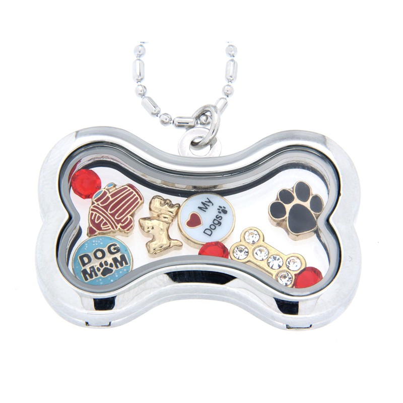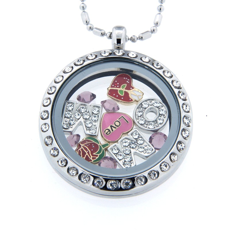 Medium Round Crystal Necklace Floating Charm Locket with Bamboo Chain with 12 Birth Month Crystals
