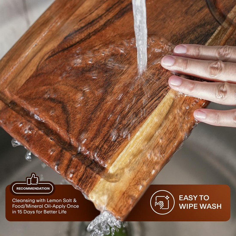 - Easy to Maintain – Hand wash only. Apply food-grade mineral oil occasionally to keep the board looking fresh and long-lasting.