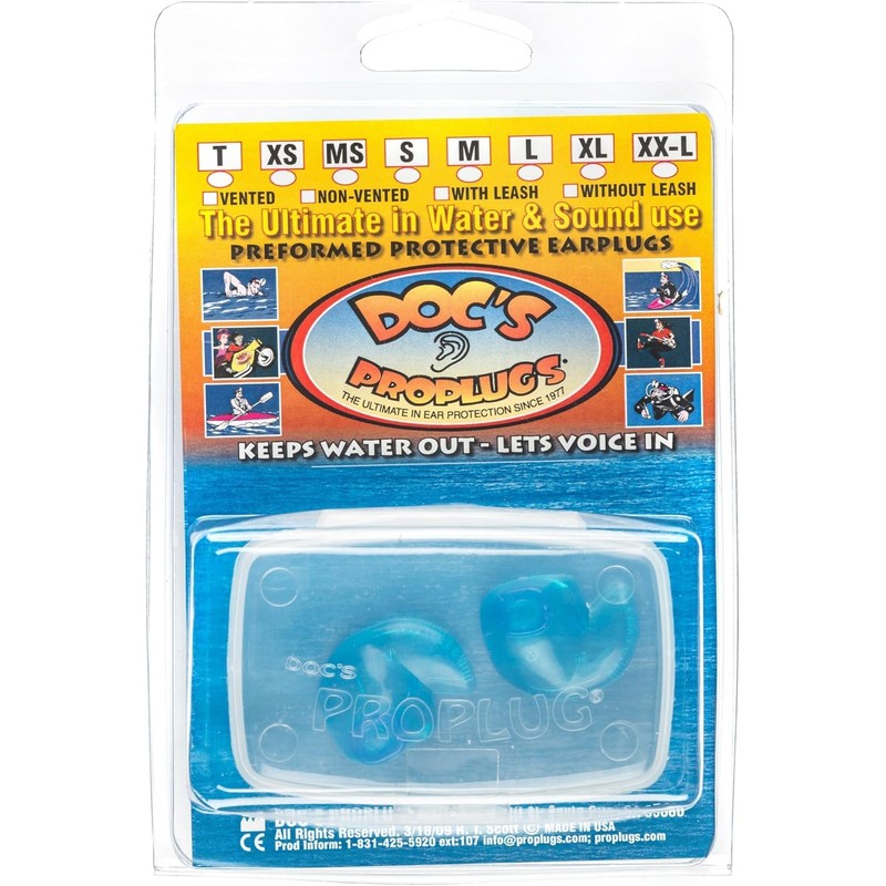 - 💧 NON-VENTED Model – Blocks Water Completely – Designed to keep water out of the ear canal, the NON-VENTED Doc’s Proplugs are ideal for swimming, bathing, and general water avoidance.