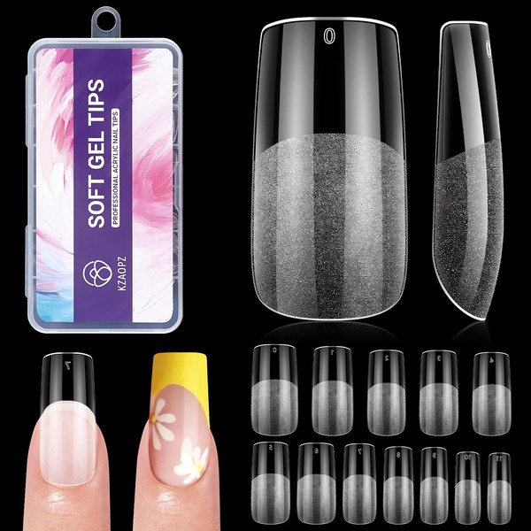 Medium Square Gel Nail Tips:240Pcs Half Matte Soft Clear False Nails Acrylic Square Full Cover Fake Nail Tips for Nail Extension Women Manicure DIY 12 Sizes