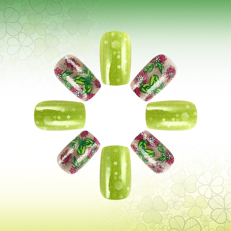 - 【Stylish Design】: Elevate your spring style with our short square press-on nails, featuring a vibrant lime green color adorned with a playful four-leaf clover floral pattern. The glossy acrylic finish enhances the cheerful design, making these lucky nails the perfect accessory for St. Patrick's Day celebrations or a fun casual outing