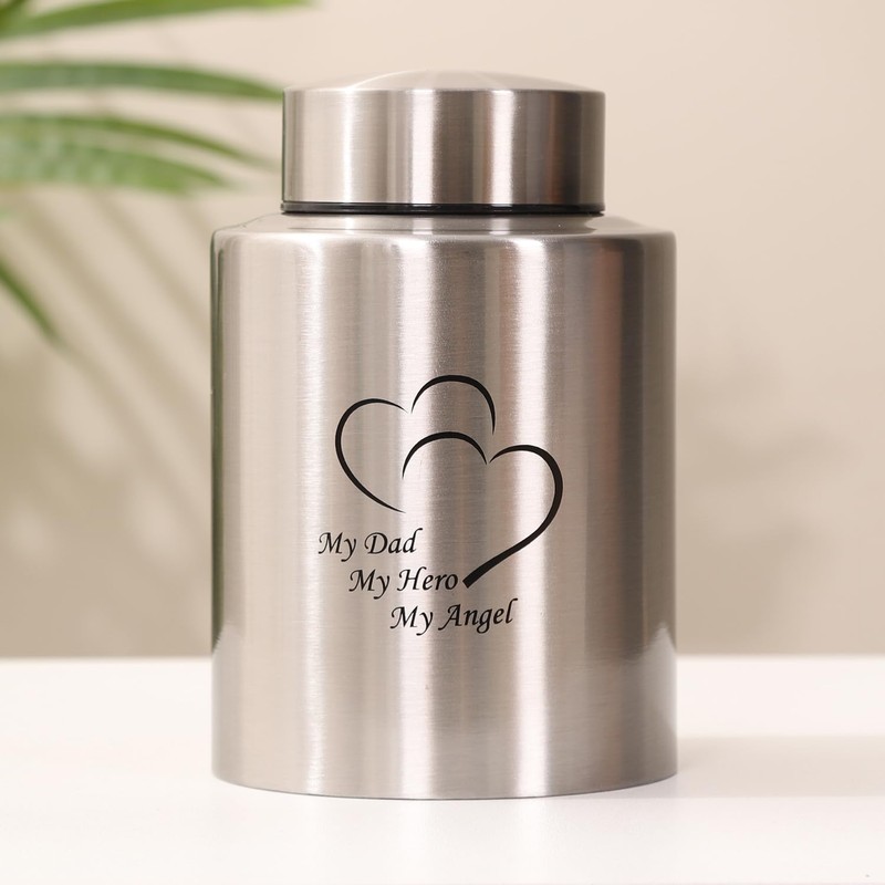 Youdear Memorials small funeral urn is notable for its unique and elegant design that will surely honour your loved one in the most beautiful way. This medium cremation urn is further complemented by a secure, tight-fitting lid. Our ash urns is both functional and beautiful. Our urn for ashes is made with stainless steel. This ensures that the small urn you'll receive is built to last. Its material is also sturdy and lightweight, making it easier for transport.