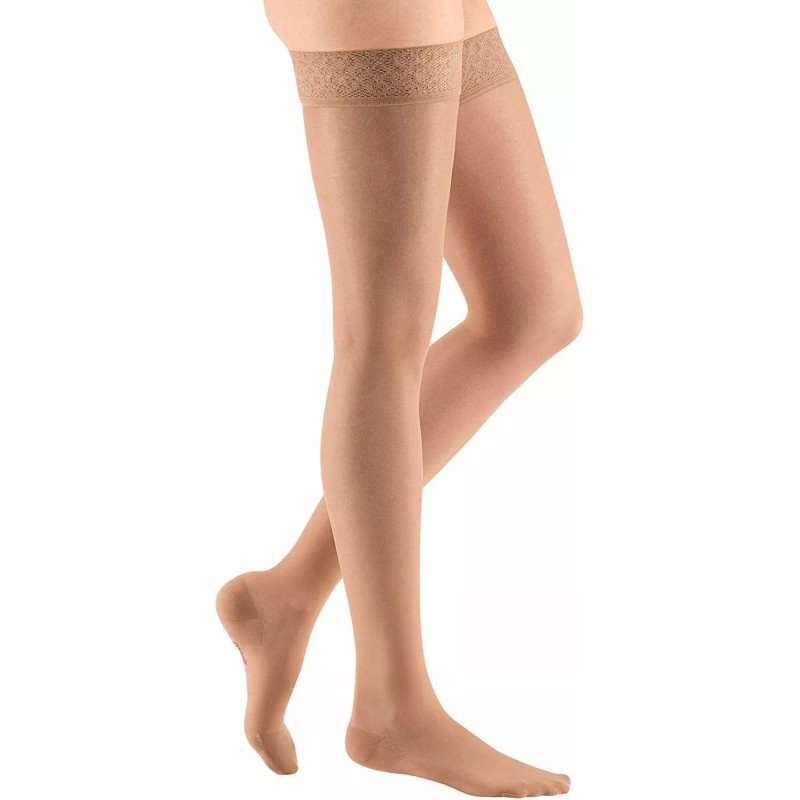 mediven Sheer & Soft, 30-40 mmHg, Thigh High w/Silicone Lace Top, Closed Toe