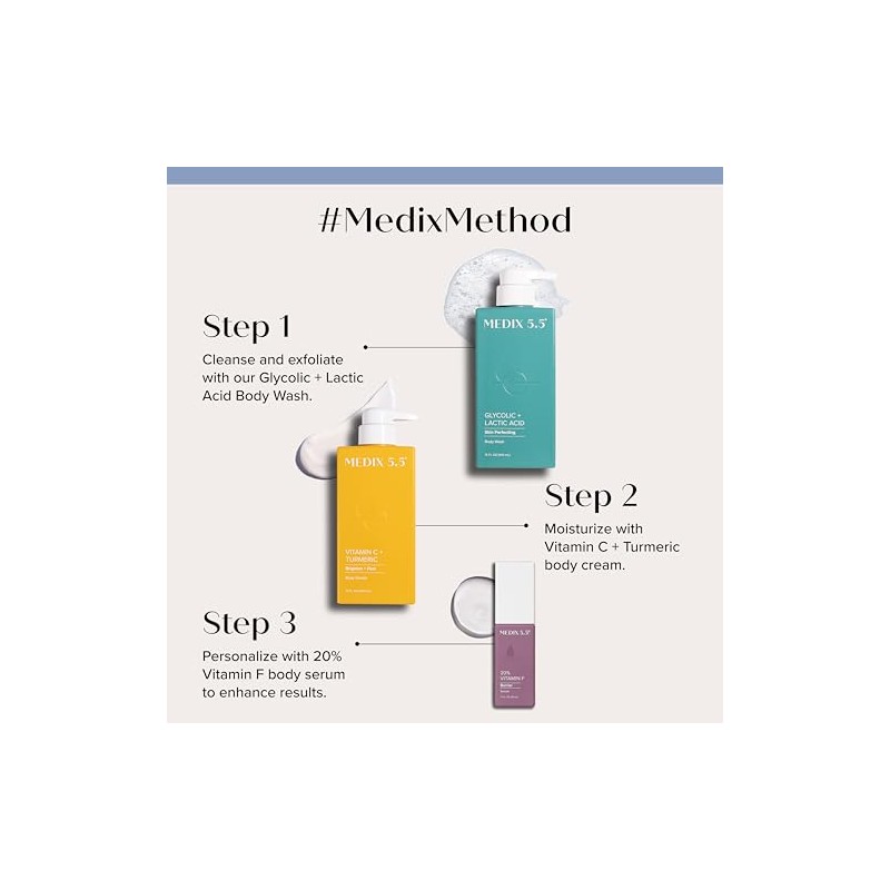 MEDIX Crema de vitamina C + suero de refuerzo de vitamina F, loción corporal hidratante de 2 piezas | Crema reafirmante e iluminadora que disminuye el tono desigual de la piel, las manchas de la edad, la piel seca y el daño solar, paquete de 2 unidades