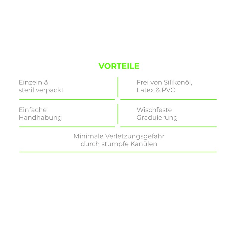 • Easy to use: smudge-proof graduation as well as comfortable pressing of the plunger of the disposable syringes for precise dispensing of liquids. The cannulas are easy to clean.