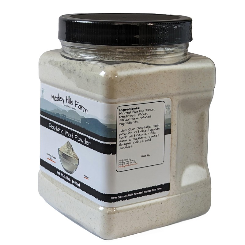 Diastatic Malt Powder by Medley hills farm 1.5 Lbs. in Reusable Container - Great Diastatic malt powder for baking Bread, Pizza Crust, Pretzels, Desserts and Milkshakes. Made in the USA - Vegan
