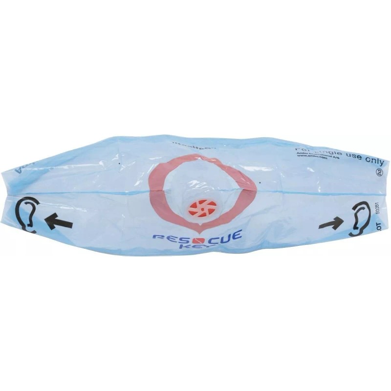 - Two integrated elastic ear bands fit over patient's ears to keep the mask in place during resuscitation