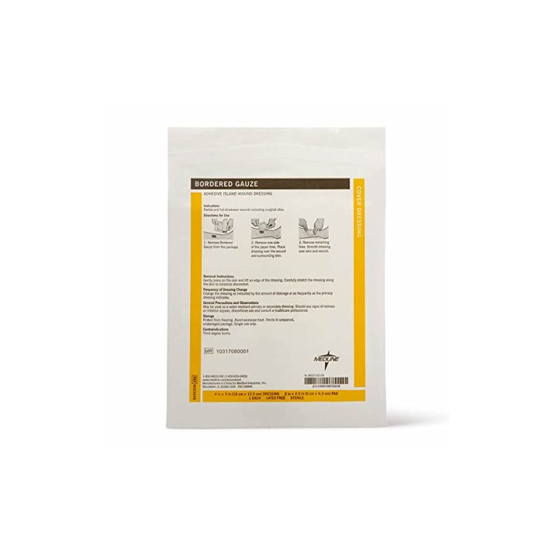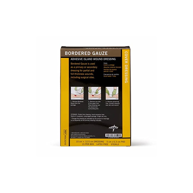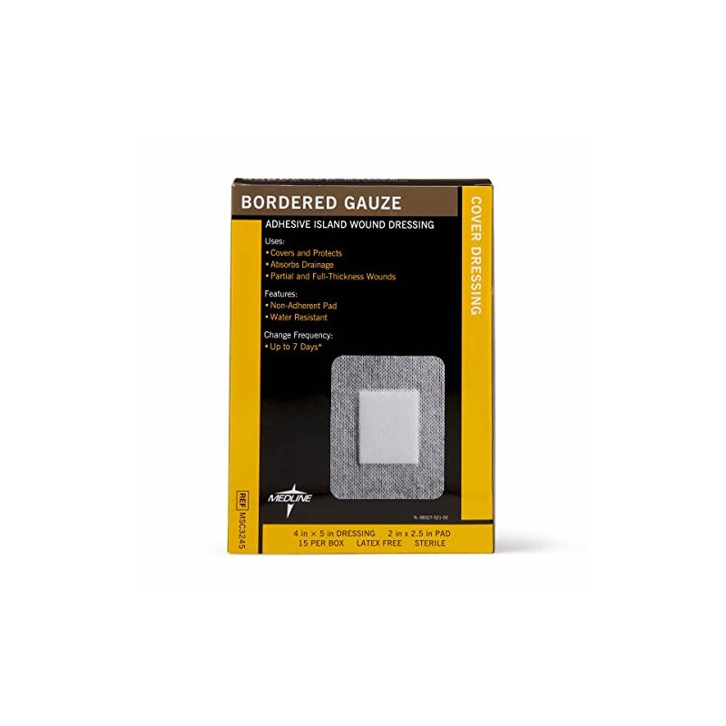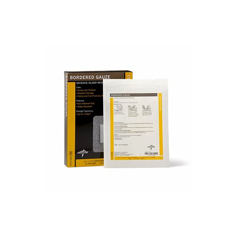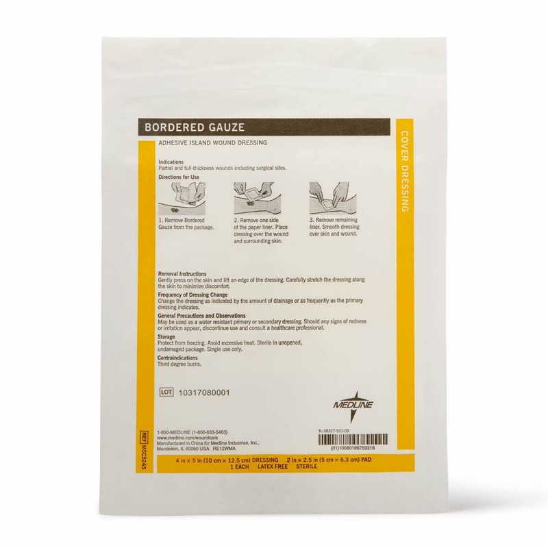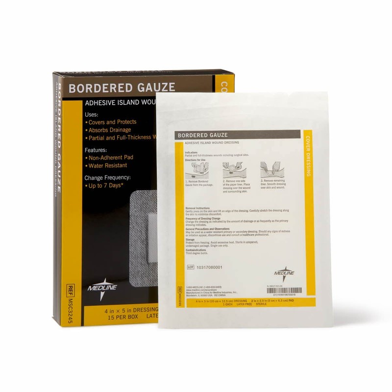 Medline Bordered Gauze, 4" x 5" Adhesive Island Wound Dressing, Sterile, 15 Count