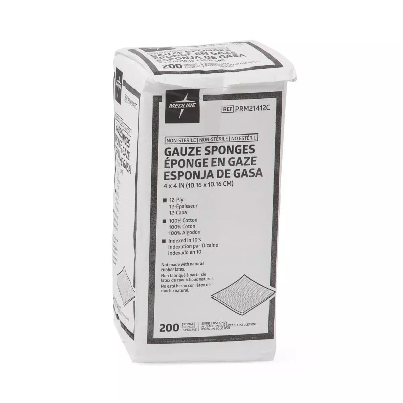 Medline Caring Woven Gauze Sponges, 4" x 4", 12-Ply