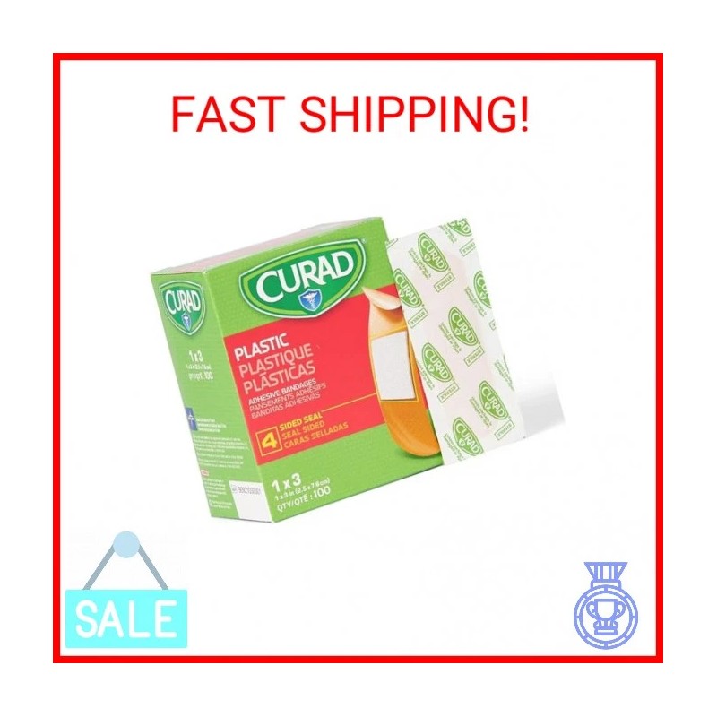 Medline CURAD Plastic Adhesive Bandages 1" x 3", Not Made from Natural Rubber Latex, Box