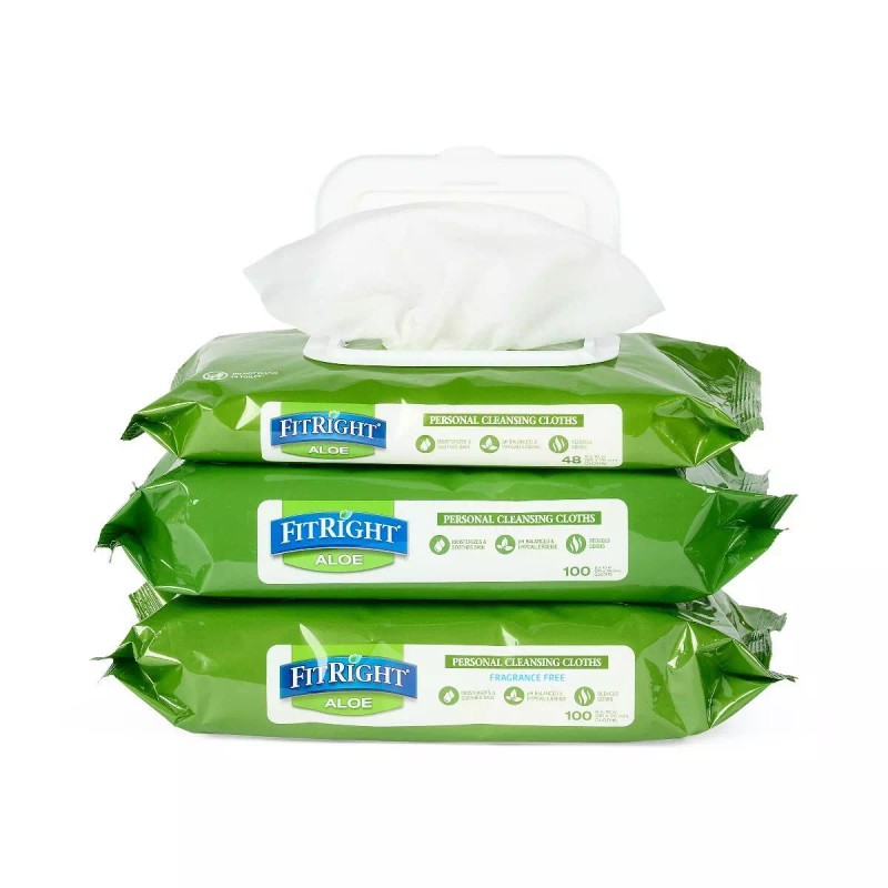 Medline FitRight Aloe Scented Wet Wipes, 8" x 10", Peel and Reseal Pack, 68/Pack