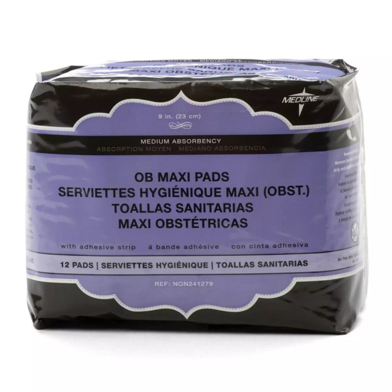 Medline Maxi Sanitary Pads with Adhesive, 9 in