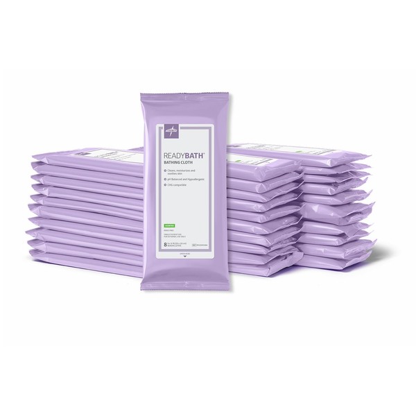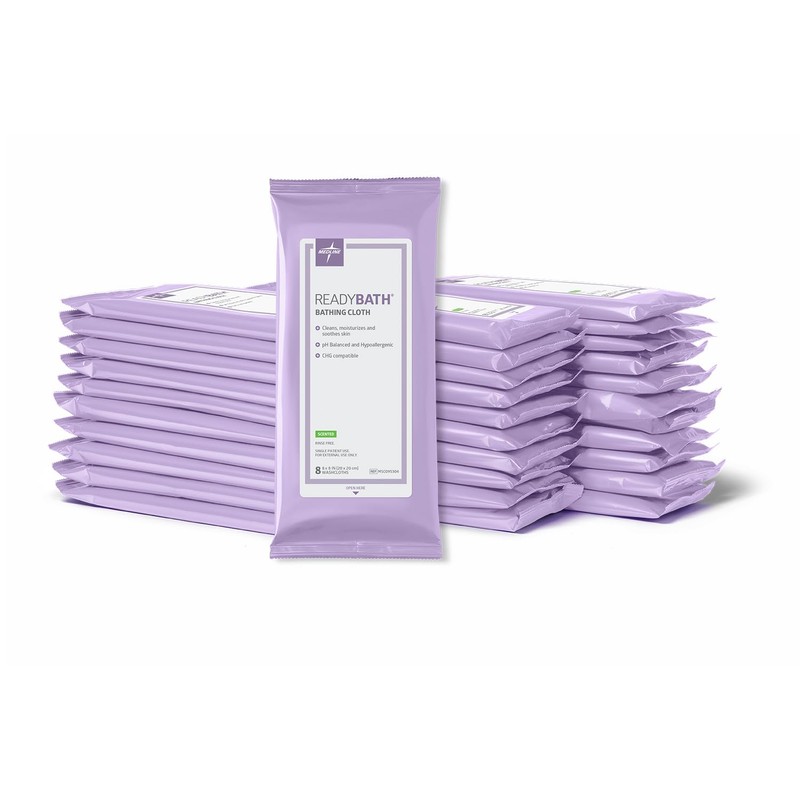 Medline ReadyBath Adult Bath Wipes, 240 Wipes (8 Wipes, 30 Packs), Scented, No Rinse Formula with Aloe, Shower Wipes for Sensitive Skin, Hypoallergenic & Alcohol-Free Wet Wipes, 8 x 8 Inch
