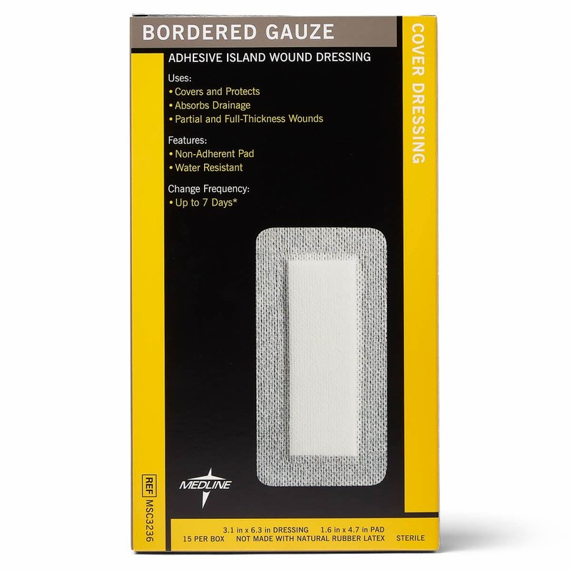 Medline Sterile Bordered Gauze, 3" x 6" with 1.5" x 4" Pad (Pack of 15)