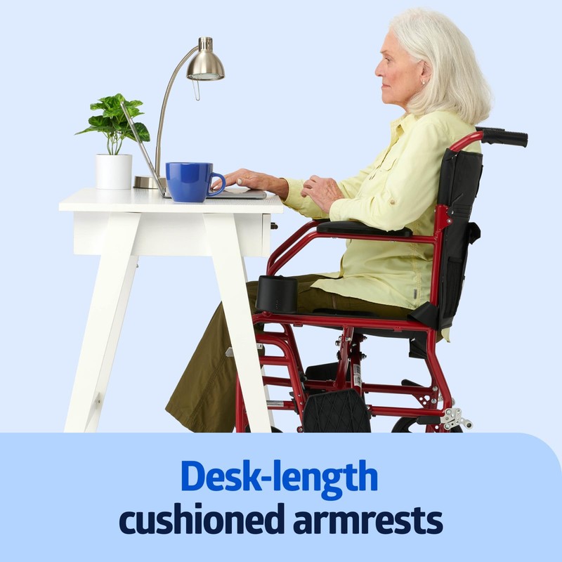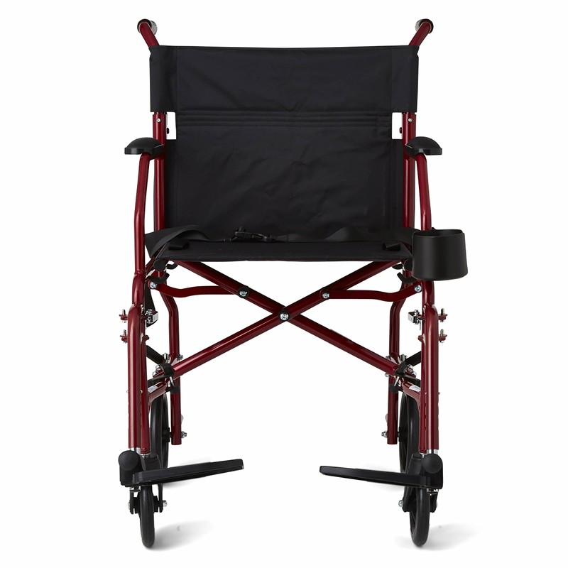 Medline Ultra Lightweight Transport Wheelchair for Adults, Foldable, 19-Inch Seat Width, Red Frame, Black Upholstery