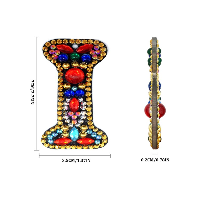 MEDOYOH DIY Letters "I" Diamond Painting Key Chains, Double-Sided Retro DIY Diamond Painting Kits Keychain, DIY Letters Art Craft Crystal Diamond Keyring Kits for Key Chain Pendant Bag Decor Brooch