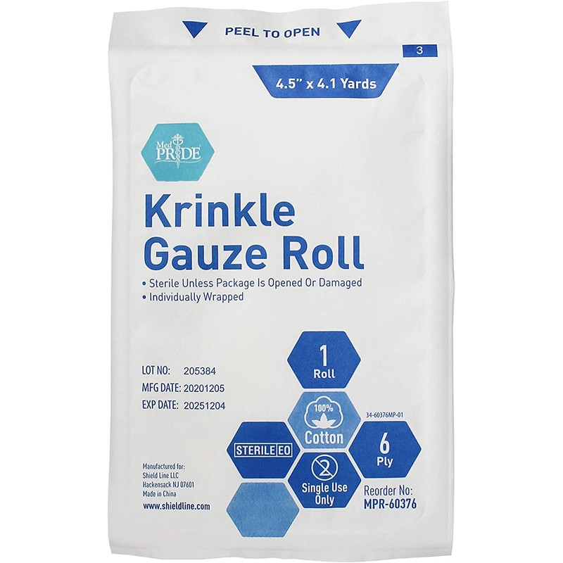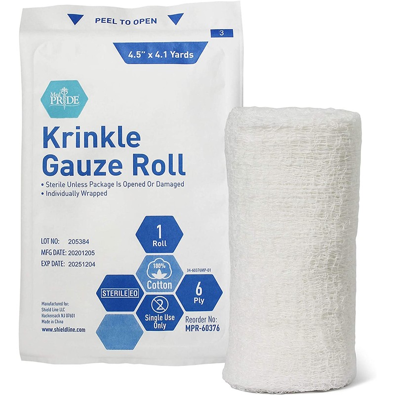 - HIGHLY DENSE & ABSORBENT COTTON KRINKLE GAUZE ROLLS: Attend to any sudden injury with the Medpride Cotton Krinkle Gauze Rolls that stand out for their superior absorbency, dense, sterile weave and optimal cushioning support they can provide to any wound. A great choice for primary or secondary gauze dressing as they shield the affected area with a soft and extra protective 6-ply cotton layer.