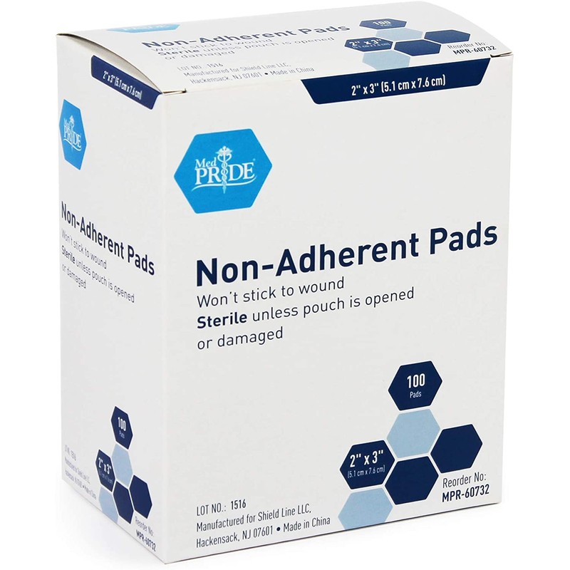 Medpride Sterile Non-Adherent Pads| 100-Pack, 2” x 3”| Non-Adhesive Wound Dressing| Highly Absorbent & Non-Stick, Painless Removal-Switch| Individually Wrapped for Extra Protection