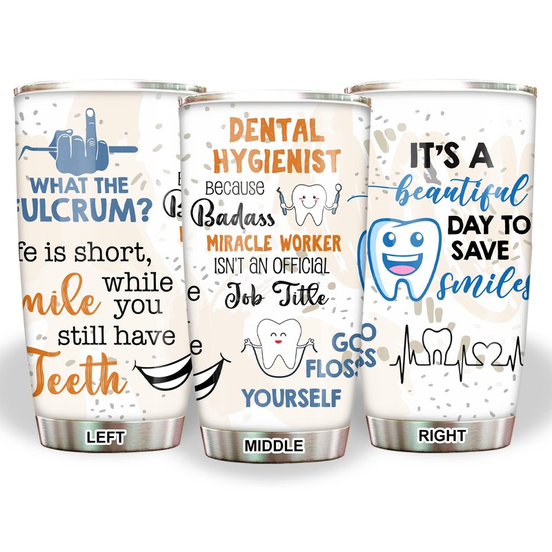 MEDROC Vaso higiénico dental de acero inoxidable de 20 onzas, divertido regalo higiénico dental para cumpleaños, Navidad, regalos de la semana de higienistas dentales nacionales para mujeres y hombres, envoltura de vaso higienista dental
