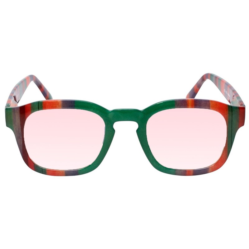Medspex Pink FL41 Reading Glasses +4.00 Green Purple Stripe Fluorescent Light Sensitivity Indoor Outdoor Photophobia Reader