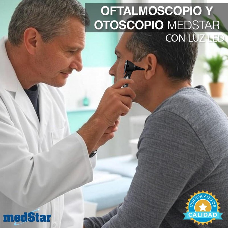 MEDSTAR | Estuche de Oftalmoscopio y Otoscopio con Iluminación de Fibra Óptica (Negro)