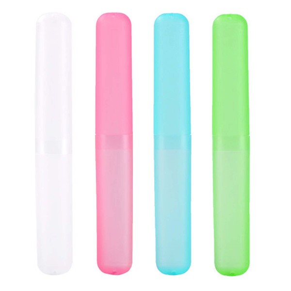Medsuo 4pcs Plastic Toothbrush Case Travel Cover Holder Storage (Pink, Blue, Green and White)
