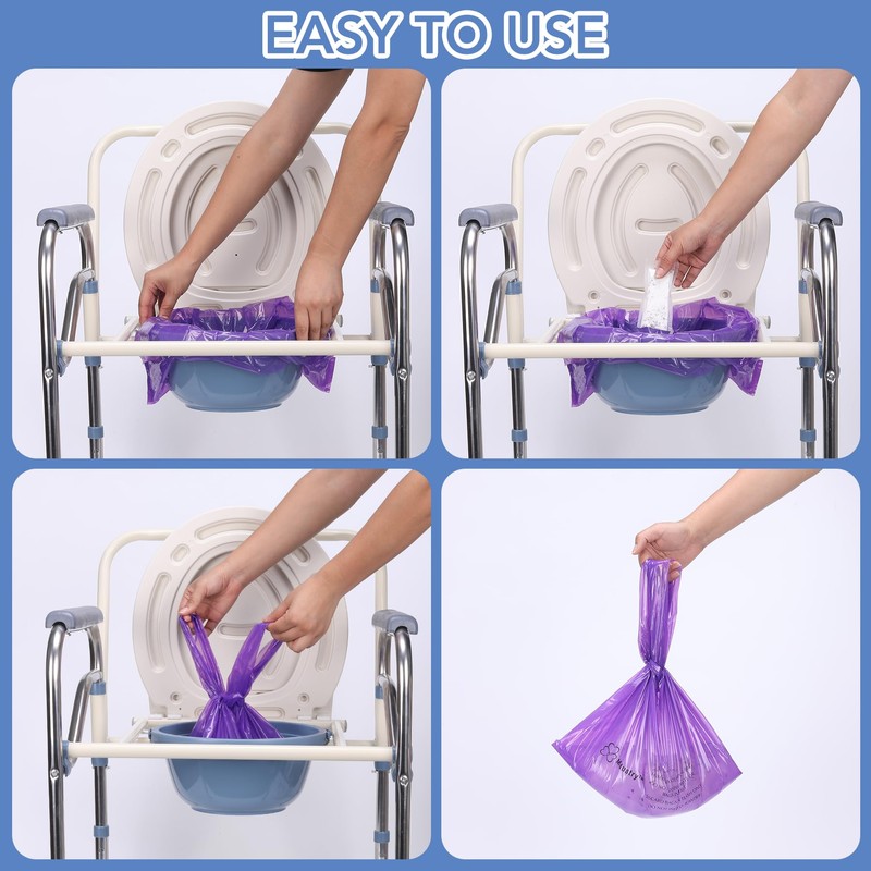 Medustry Commode Liners with Super Absorbent Pads - 60 Pack Disposable Bedside Commode Bags with Gel Pads, Individually Wrapped,Universal Fit, Leak-Proof for Adult Potty Chairs & Camping Toilets