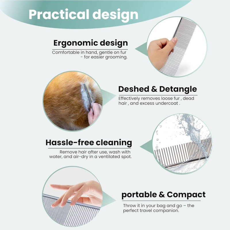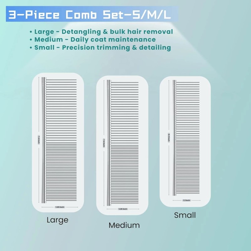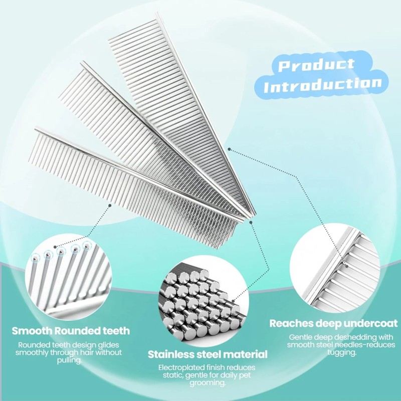 MEDUWEDU [3 Pack] Stainless Steel Pet Comb Set – Grooming Combs for Dogs & Cats,...