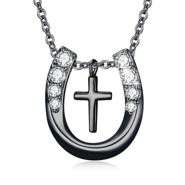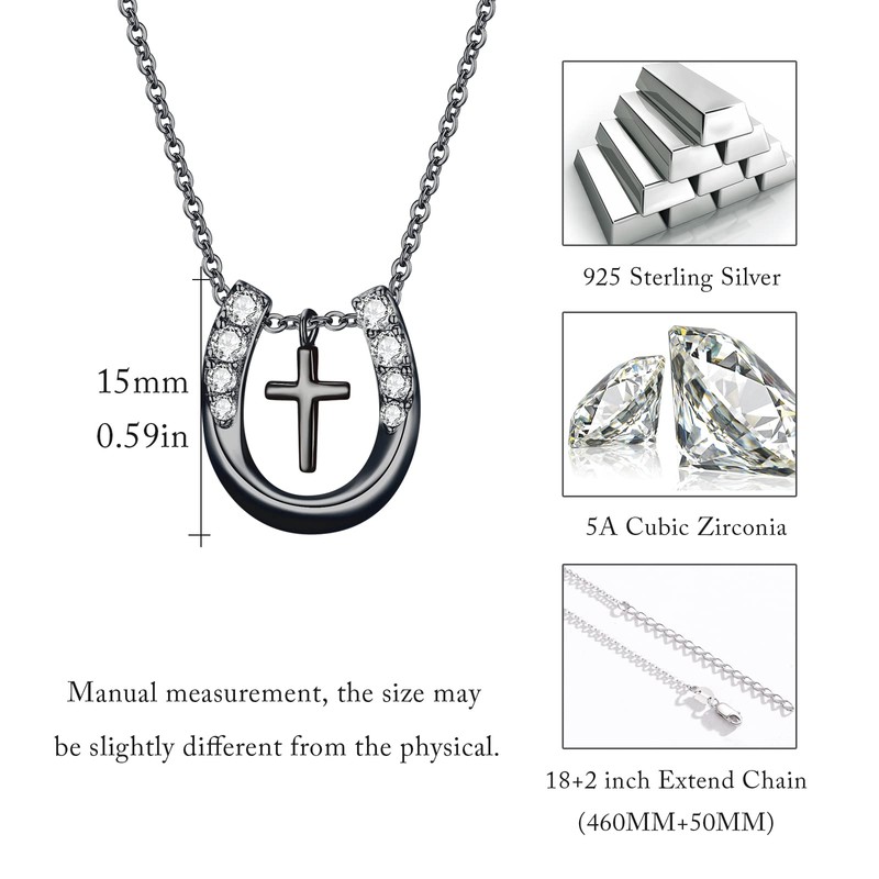 MEDWISE Lucky Horseshoe Necklace Gifts for Cowgirls Women Sterling Silver Black Horseshoe Faith Horseshoe Pendant Necklace Jewelry for Horse Lover Birthday Christmas Mothers Day