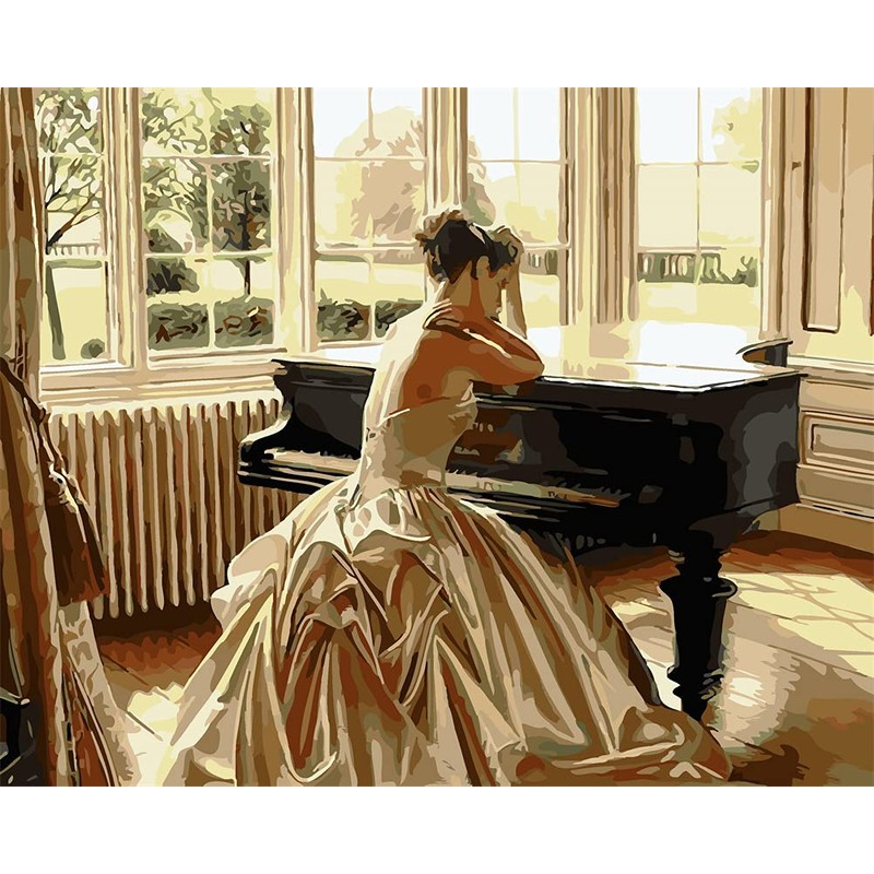 Meecaa Paint by Numbers Girls Piano Kit for Adults Beginners DIY Oil Painting 16 x 20 Inch (Girl, No Frame)