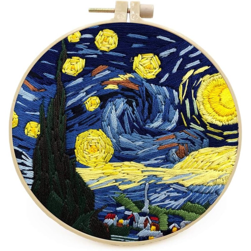 Meecaa Starry Sky Moon Van Gogh Embroidery Kit Starter Set, Hand Embroidery S...