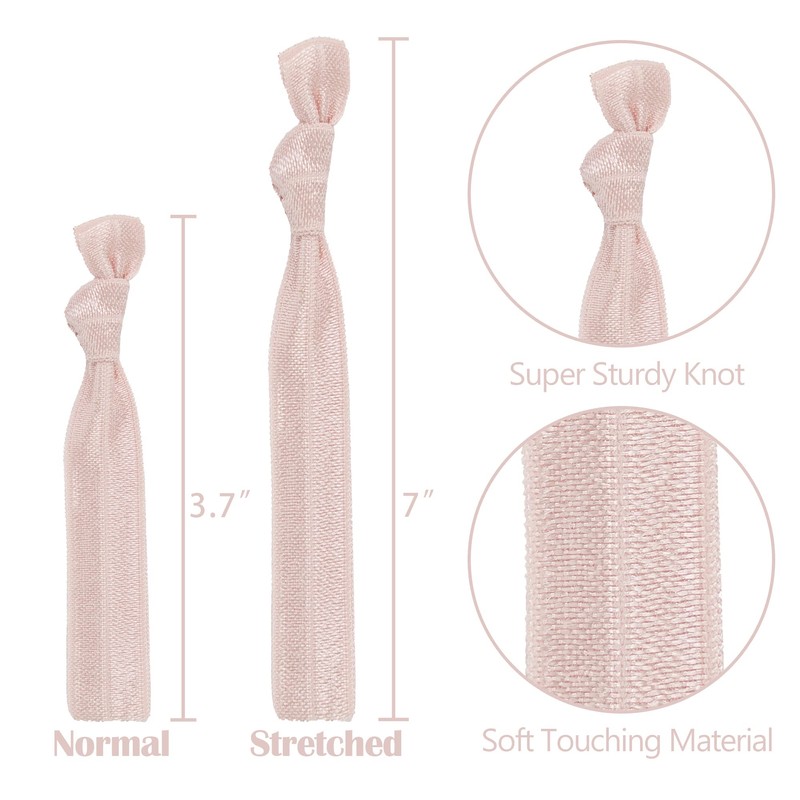- Our rose gold package contains 100 pack solid color hair ties. Our hair ties are made of very soft fold over elastics with a satin look finish. Each hair tie measures approximately 3.7 inches in length (including the knot), when laid flat, allowing you to store an unused band comfortably on your wrist.