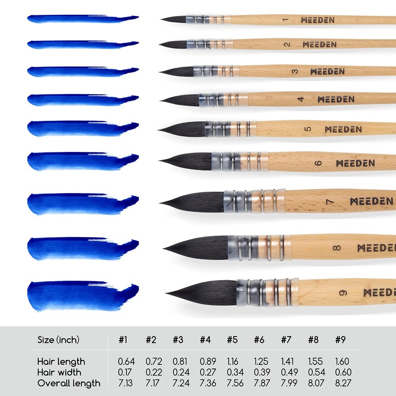 - 【Watercolor Paint Brushes】--- MEEDEN’s artist paint brushes set features 9 premium synthetic squirrel hair brushes designed to mimic the water-holding capacity and softness of natural squirrel hair. Perfect for watercolor, gouache, and ink techniques, these brushes deliver smooth, controlled strokes for artists of all levels. The durable beech wood handles ensure a comfortable grip, while the individual packaging keeps each brush protected for travel or storage.