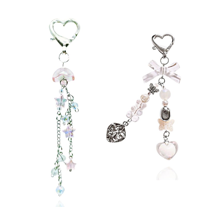 Meefisher Y2K Aesthetic Strawberry Butterfly Accessories Bear Guitar Keychain Cute Keyring for Girl Women Bag Charms Pendant (2 PCS(White Bear Butterfly,Star))