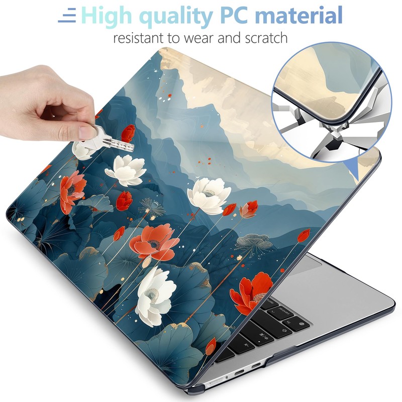MEEgoodo Case for M4/M3/M2 MacBook Air 13.6 inch Case 2025 2024 2022, Fit Model A3240/A3113/A2681, Laptop Hard Shell with Keyboard Cover Compatible with MacBook Air 13 inch, Lotus Fields