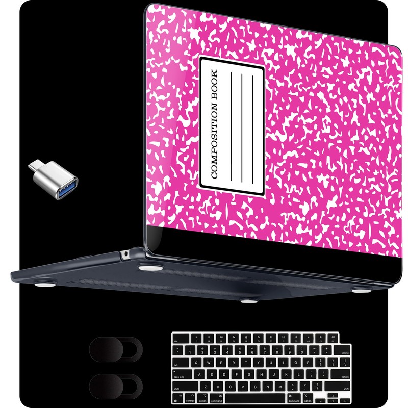 MEEgoodo for M4/M3/M2 MacBook Air 13.6 inch Case 2025 2024 2022(Fit Model A3240/A3113/A2681), Clear Laptop Shell Cases for MacBook Air 13-inch, Rose Red Composition Book