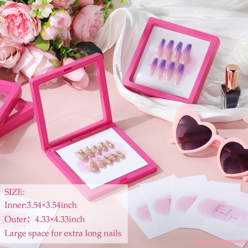 - Beautiful and Practical Combination Set: the press on nail organizer set comes with 30 pieces of 3D floating frame, 30 pieces of display card, 30 sheets of double sided nail tape (90 pieces), which are sufficient to meet your daily needs; Please note that faux nails tips are not included