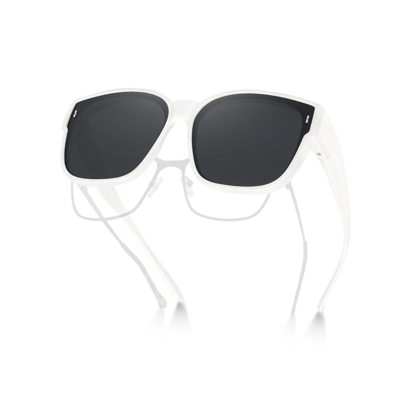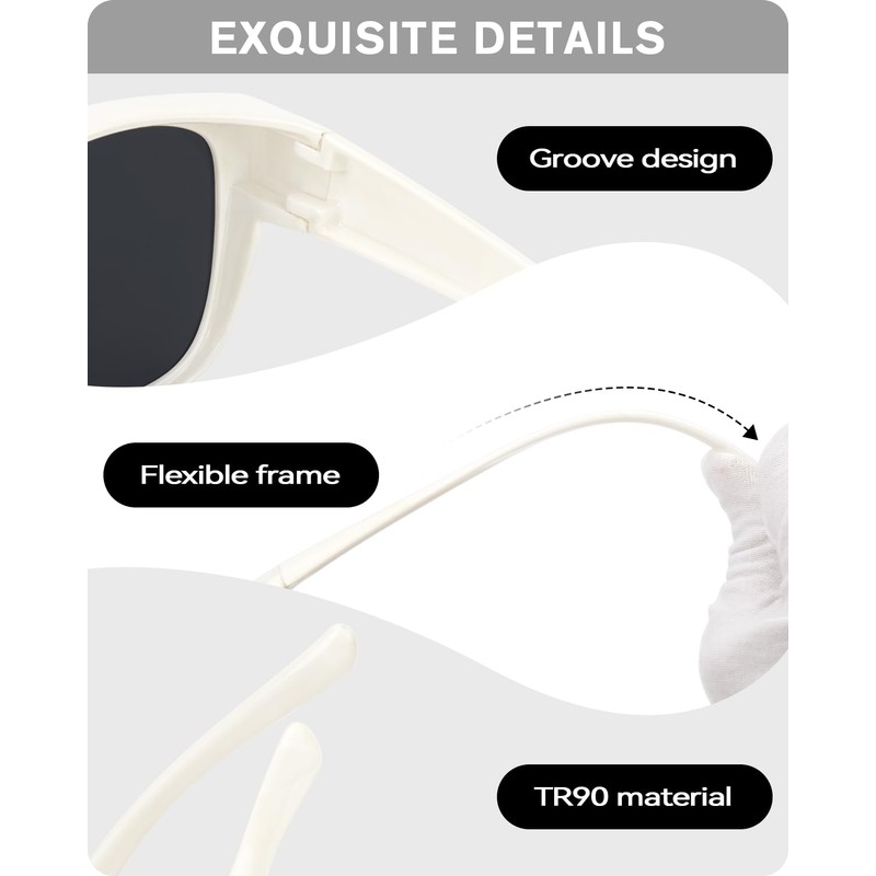 - [FIT OVER GLASSES] Designed for those who wear prescription & reading glasses. The groove of the temple and big square frame can fit most glasses. You can enjoy wearing glasses and sunglasses at the same time.