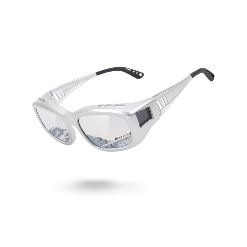 Meeloog Polarized Sports Sunglasses Fit Over Glasses for Men Women, Wrap Around UV Protection Shades Driving Cycling Fishing (P1 Silver Frame/Silver Mirrored Lens)